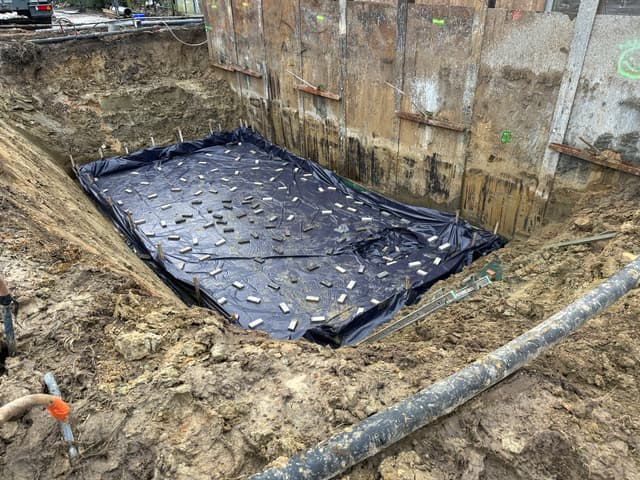 Fase 2 Een damwand zorgt voor een veilige bouwput en beschermt de aanpalende gebouwen.